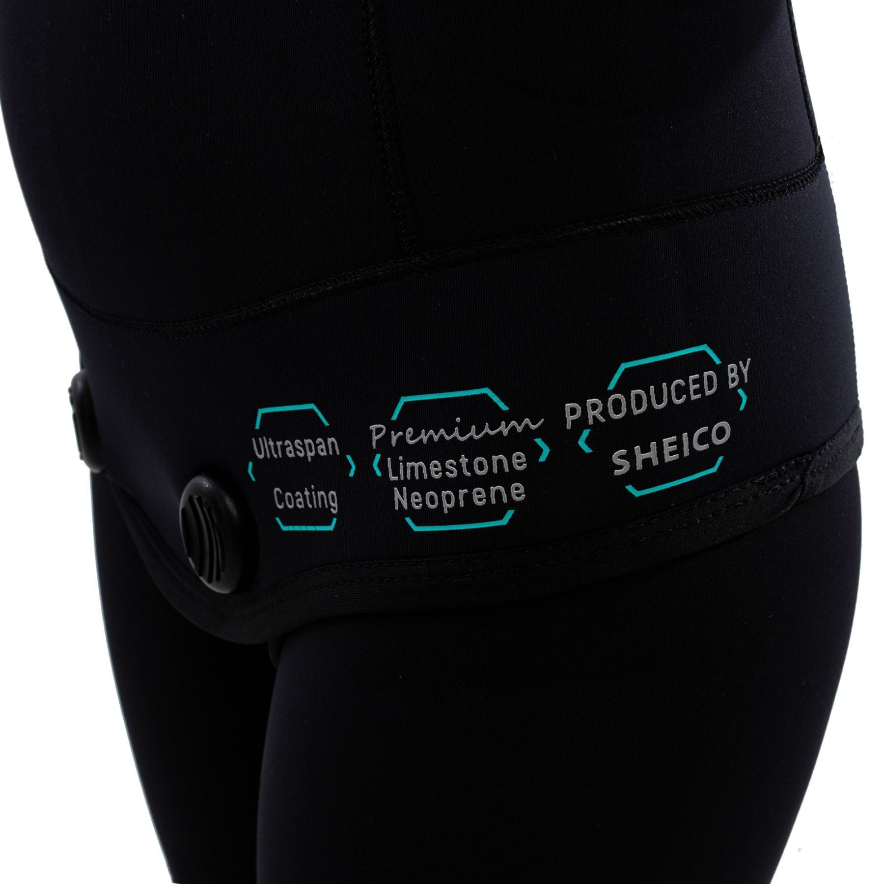 Анатомический «фридайверский» крой обеспечивает непревзойденный комфорт, максимальную свободу движений и облегчает положение рук над головой. При производстве данной модели гидрокостюма используются экологичный неопрен и тканевые материалы ведущего мирового производителя - Sheico (Шейко). Открытая пора внутри костюма обеспечивает максимальную теплоизоляцию, а внешнее покрытие из ультраспана защитит гидрокостюм от механических повреждений и добавит свободу движения за счёт сверхрастяжимости. Гидрокостюм состоит из куртки со шлемом, и штанов с высокой талией, без лямок. Куртка имеет крой типа реглан, который максимально подходит для занятий фридайвингом, увеличивая комфорт и создаёт максимальное прилегание гидрокостюма.