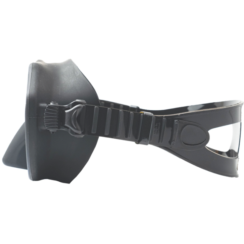 - Малый подмасочный объем. Благодаря безрамочной конструкции, линза располагается ближе к глазам, что значительно снижает объем пространства внутри маски, облегчая продувку и минимизируя расход воздуха.