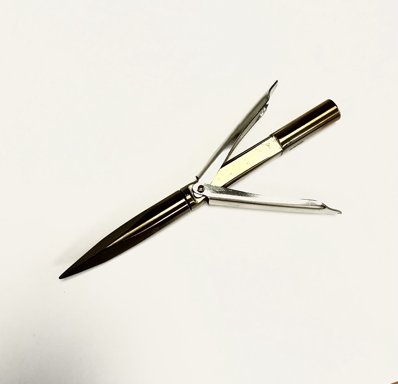 Однозубый наконечник для подводной охоты со скручевающейся головой и трехгранной заточкой.