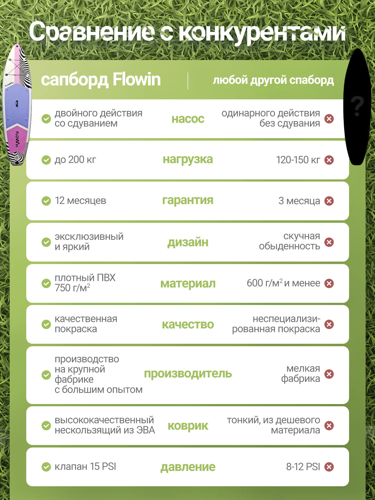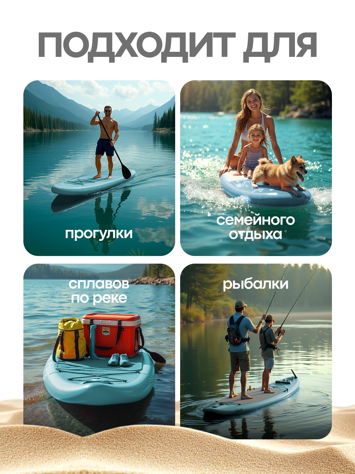 Высокая грузоподъемность: Мощный сапборд 200 кг, который выдерживает серьезные нагрузки. Его можно использовать как сапборд для двоих (например, для прогулок мамы с ребенком или двух взрослых) или как сапборд большой для активных райдеров со снаряжением.