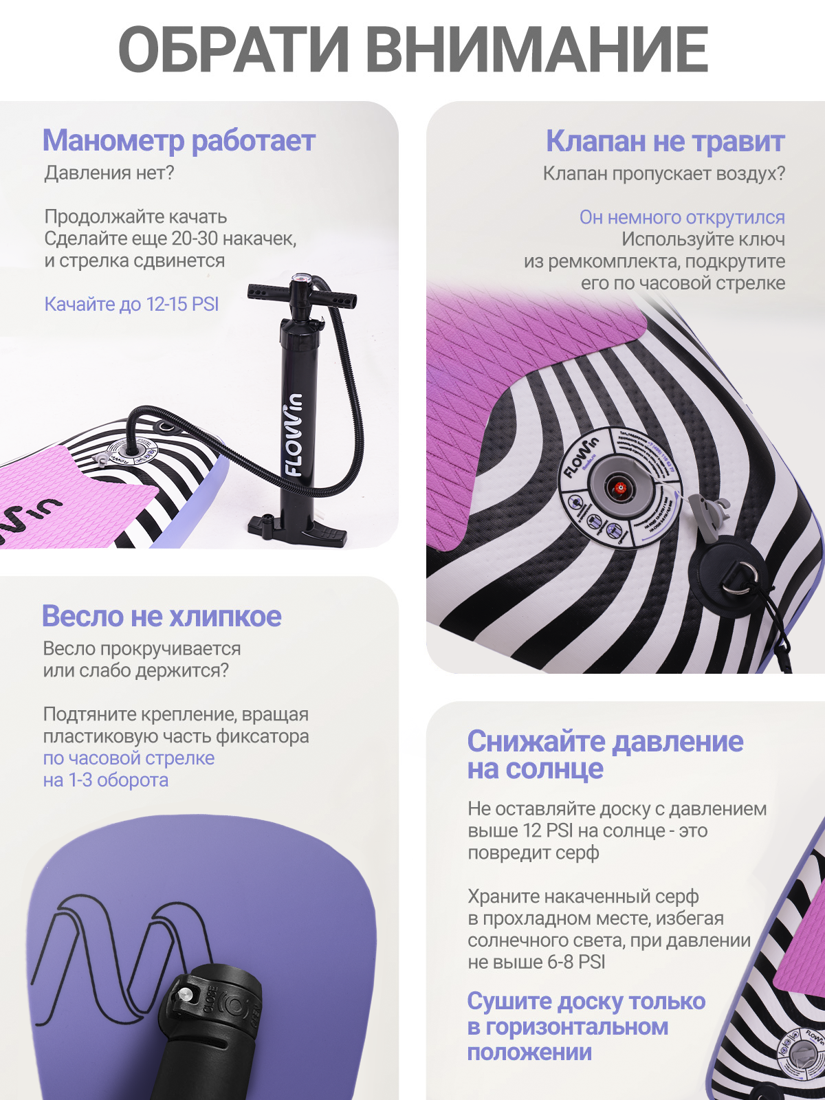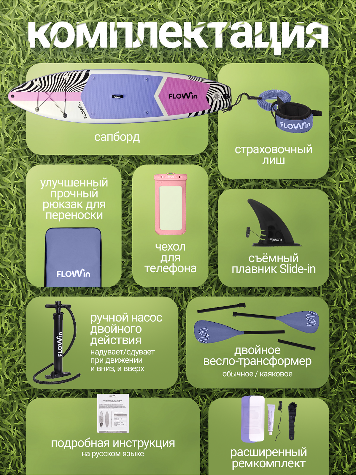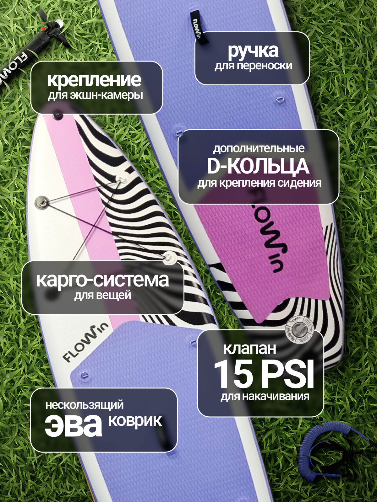 Flowin Violet 335 — это ваш идеальный сап борд, который готов к сезону сразу из коробки. Купить сапборд Flowin — значит выбрать красоту, стиль и надежность в одной доске!
