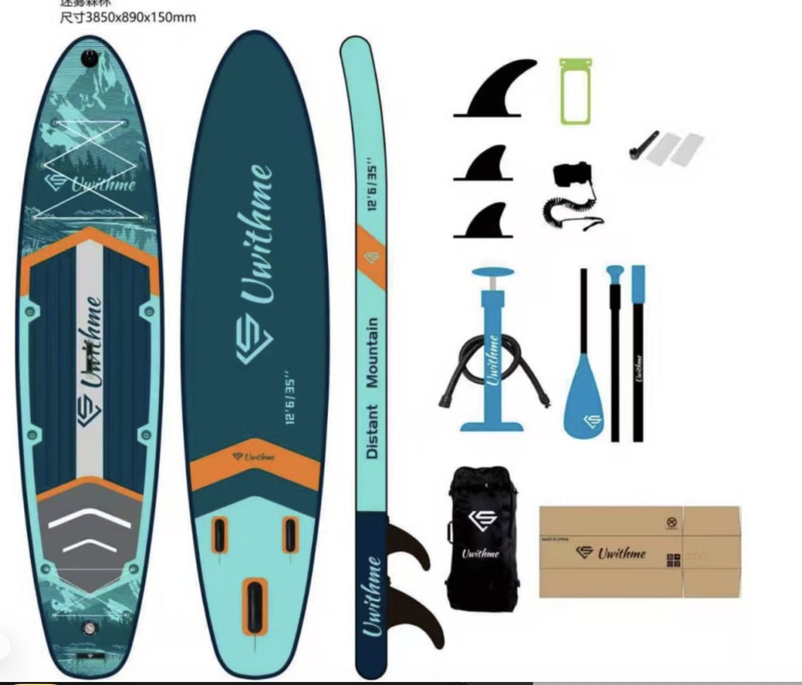 Uwithme 385 — самый большой сапборд в линейке: длина 385 см (12'8") и ширина 89 см. Грузоподъёмность 200 кг — идеален для крупных райдеров, катания вдвоём или семейного отдыха с детьми. Увеличенная площадь доски даёт больше пространства и стабильности.
